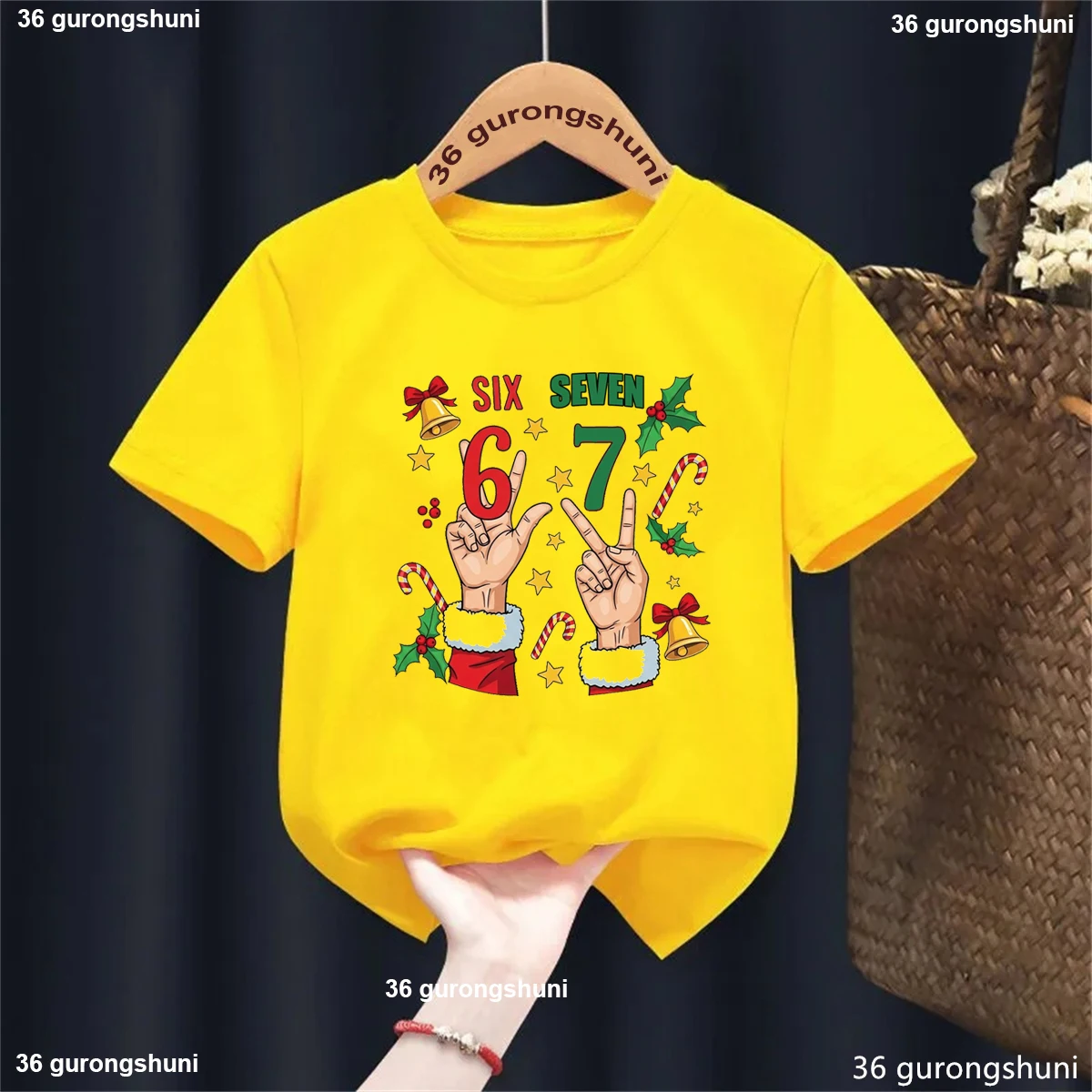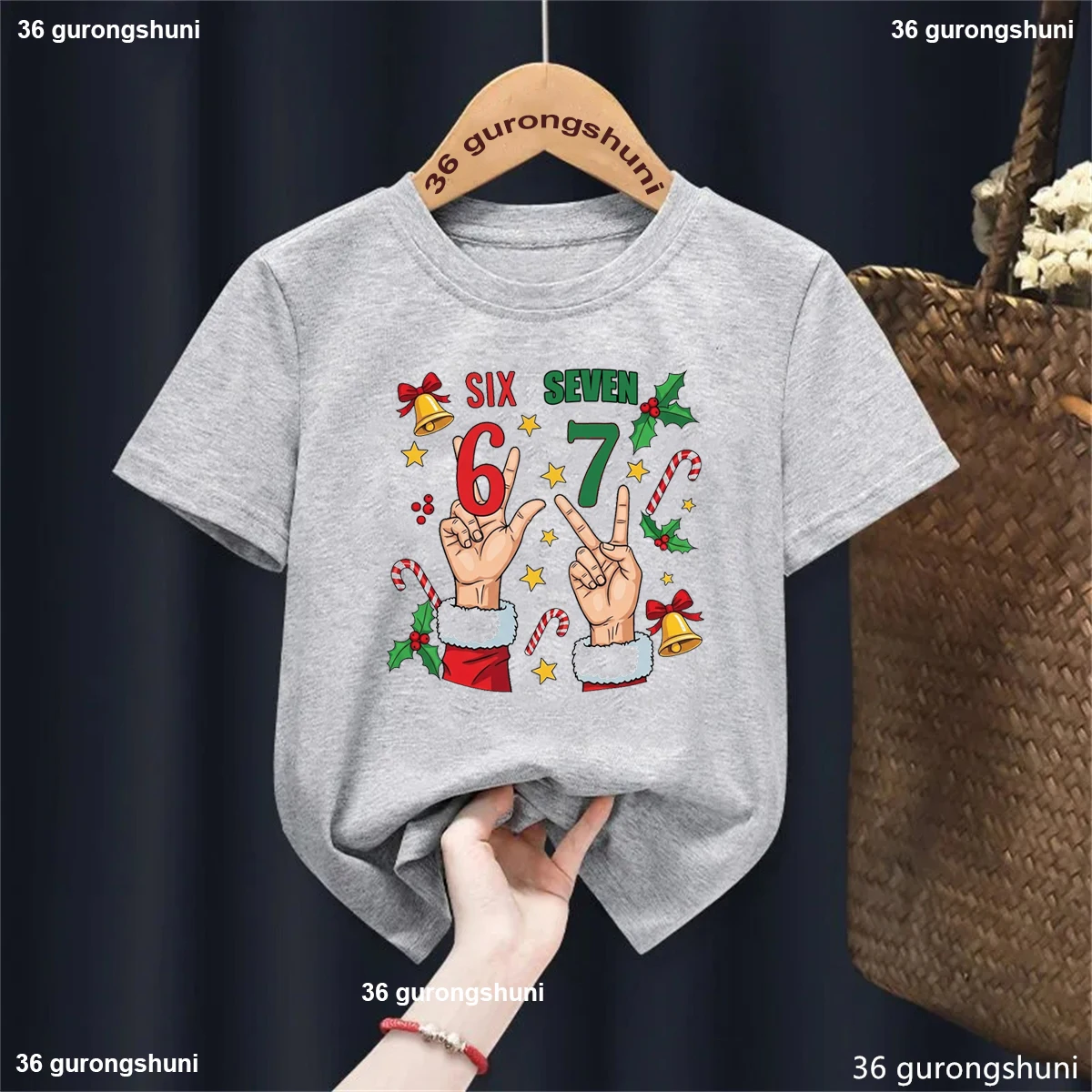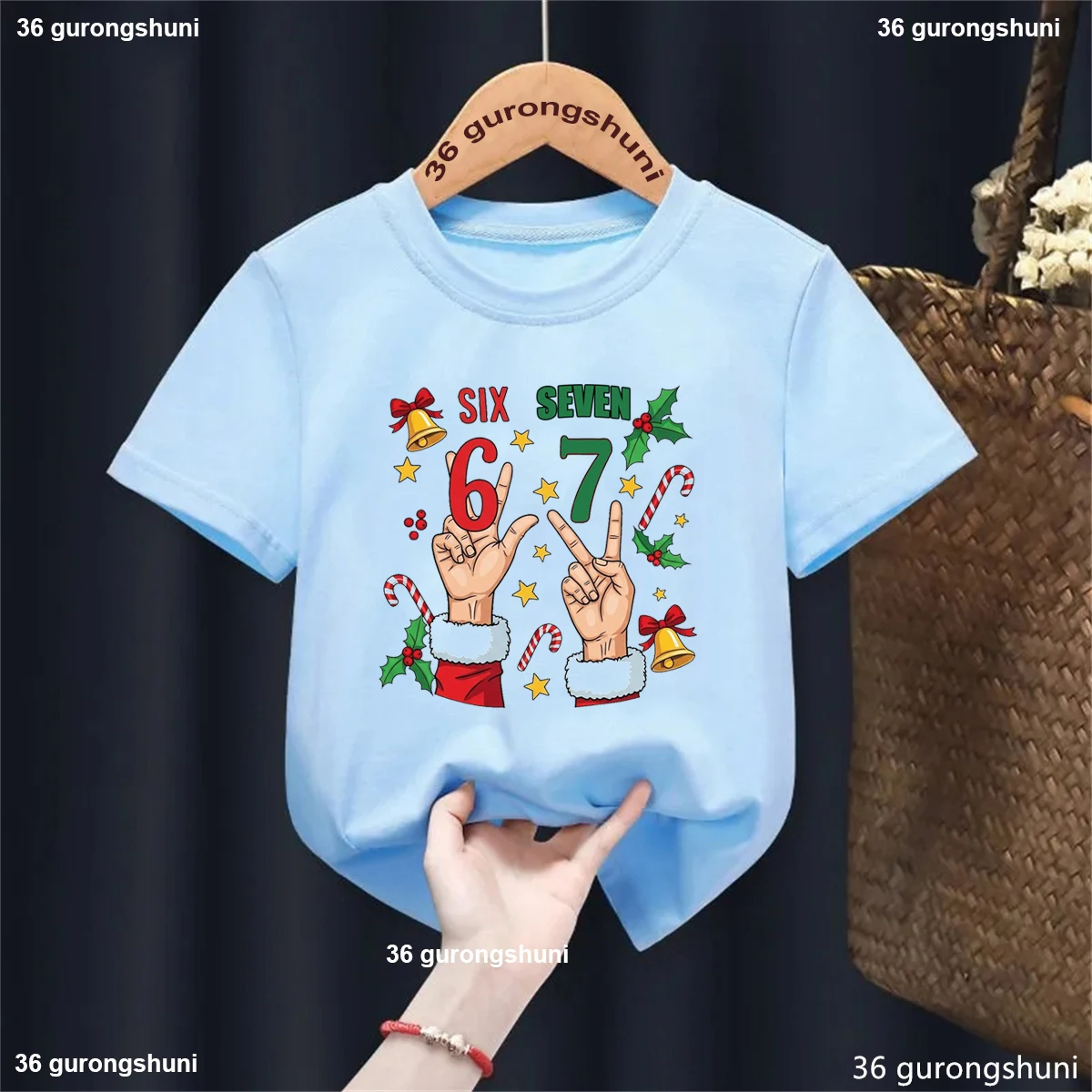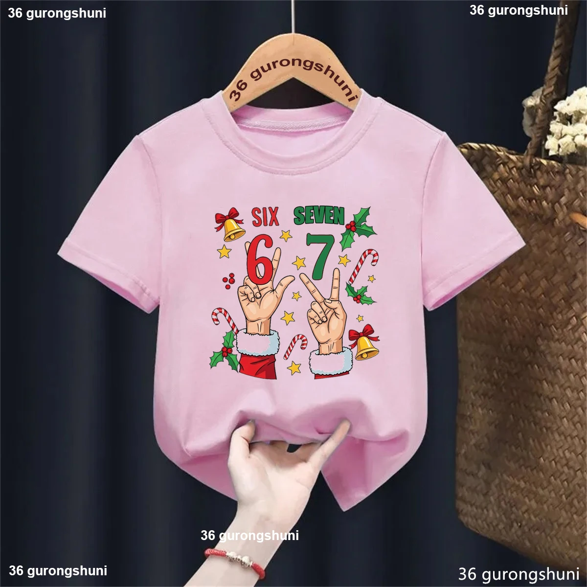 Christmas Six Seven 67 Meme Printed T Shirt Girls/Boys Xmas Gift Shirt Kawaii Kids Clothes White/Black/Red/Pink T-Shirt